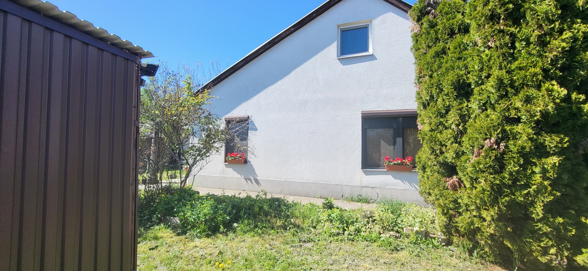 - könnyűszerkezetes garázs és kb. 15 m2 melléképület