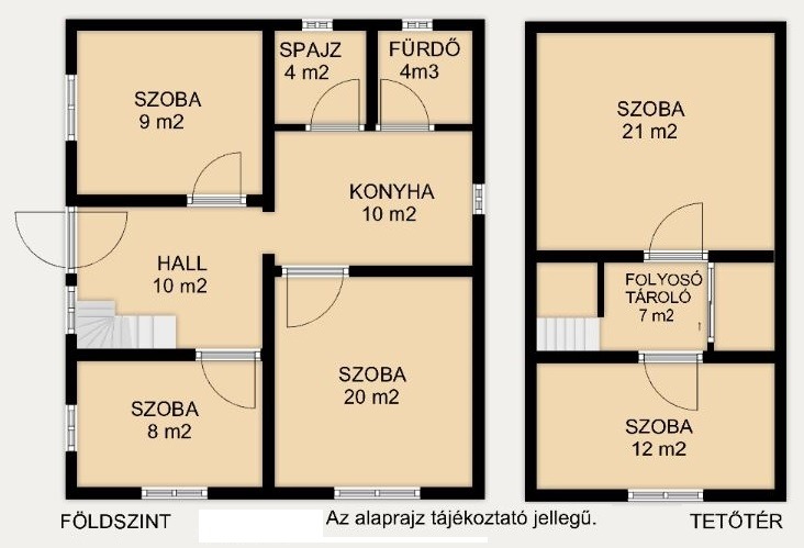 - TETŐTÉR: 2 KÜLÖNNYÍLÓ szoba
